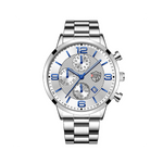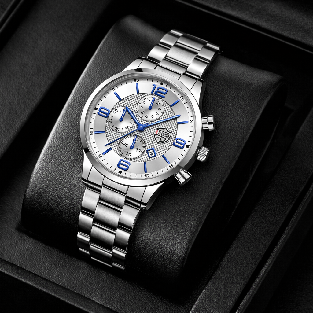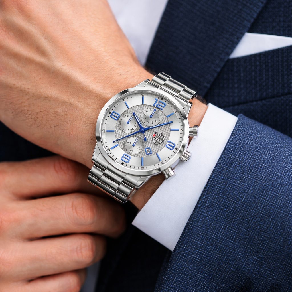 DEYROS SILVER é um relógio masculino pensado para quem valoriza elegância clássica, presença e consistência no dia a dia. O acabamento prateado transmite sofisticação sem exageros, tornando-o uma escolha segura para contextos profissionais e ocasiões formais.