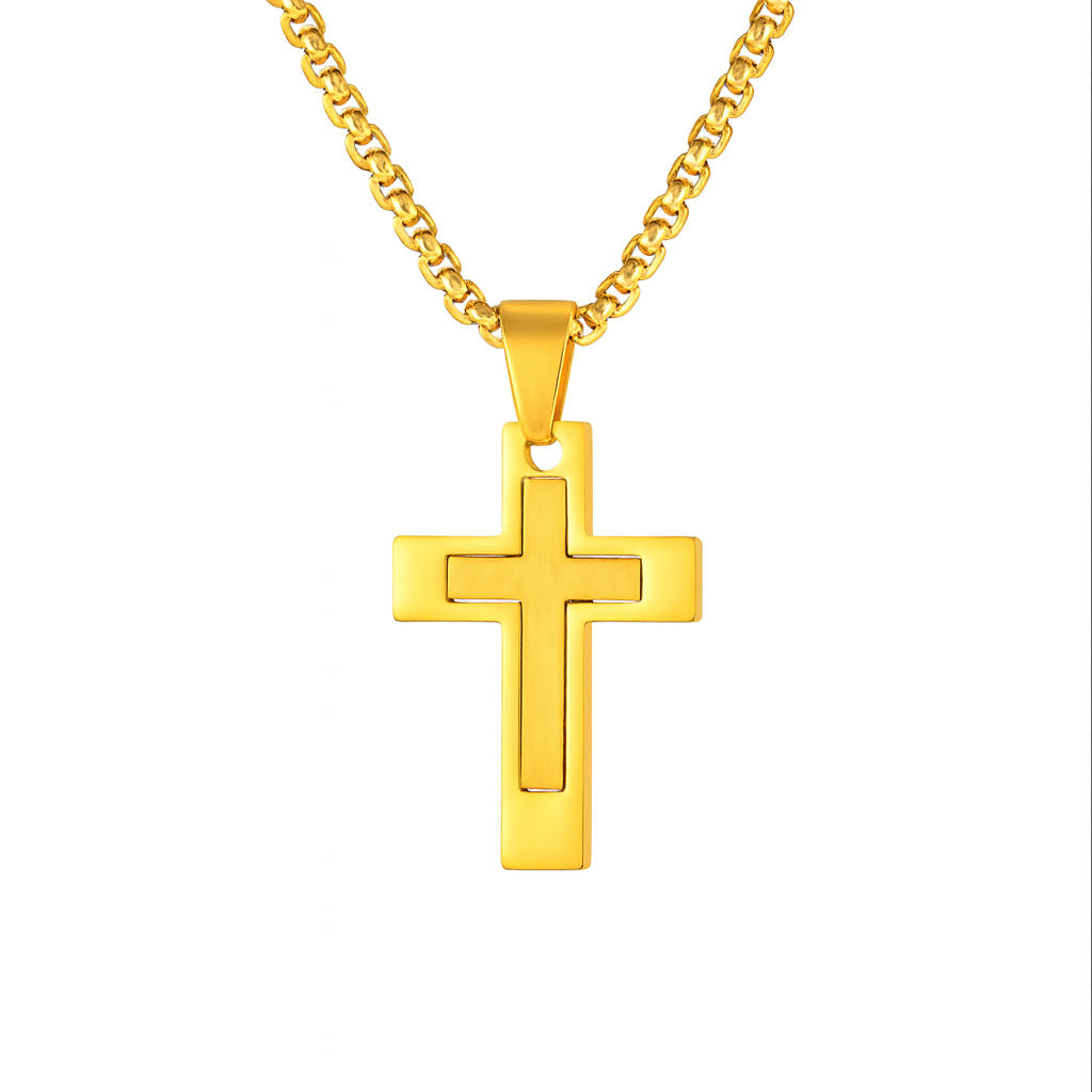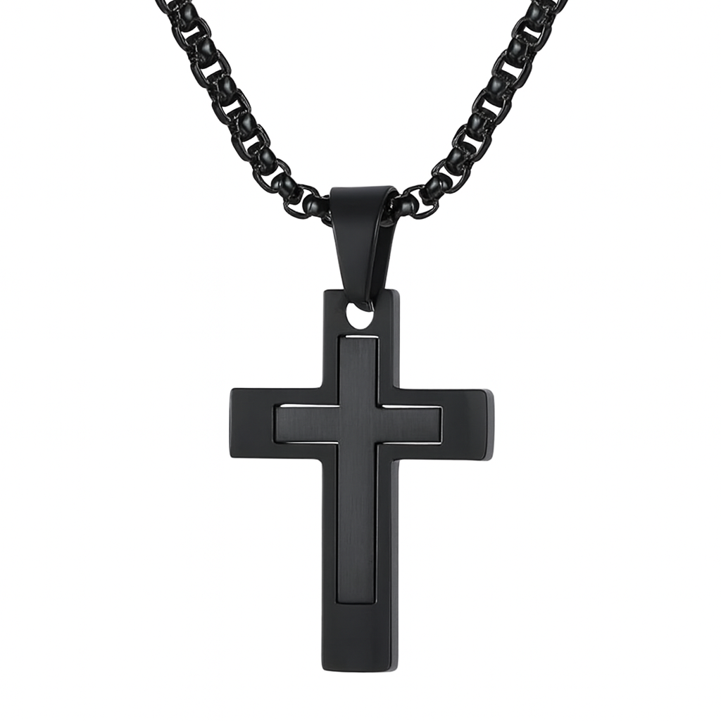 • Resistente à água, suor e oxidação • Prateado, Dourado, Preto • Tamanhos: 50 cm, 55 cm, 60 cm • Cruz minimalista com presença marcante